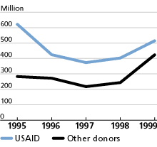Sources: USAID’s NEWVERN database; UNFPA, 1999 Annual Report on Donor Support for Contraceptives and Logistics, accessed online at www.unfpa.org/ on July 18, 2001.