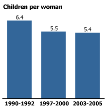 at 5.4 for the three-year period before the survey. This figure has little statistical difference from the TFR of 5.5 reported in the 2000 DHS.