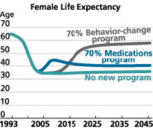 than medications alone. And a behavior-change-only program would raise female life expectancy at birth fairly dramatically