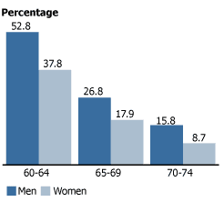 Note: None of the change for men ages 60-64 between 1994 and 2005 occurred between ages 60-61. The increase for men ages 62-64 was 17 percent.