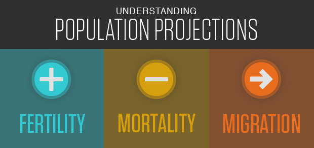 This infographic uses three main projections produced by the UN Population Division to illustrate how assumptions can produce significantly different results over time.