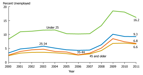 U.S. Unemployment Rate by Age Group, 2000-2011