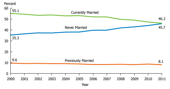 Marital Status Among young Adults Ages 25-34, 2000-2011